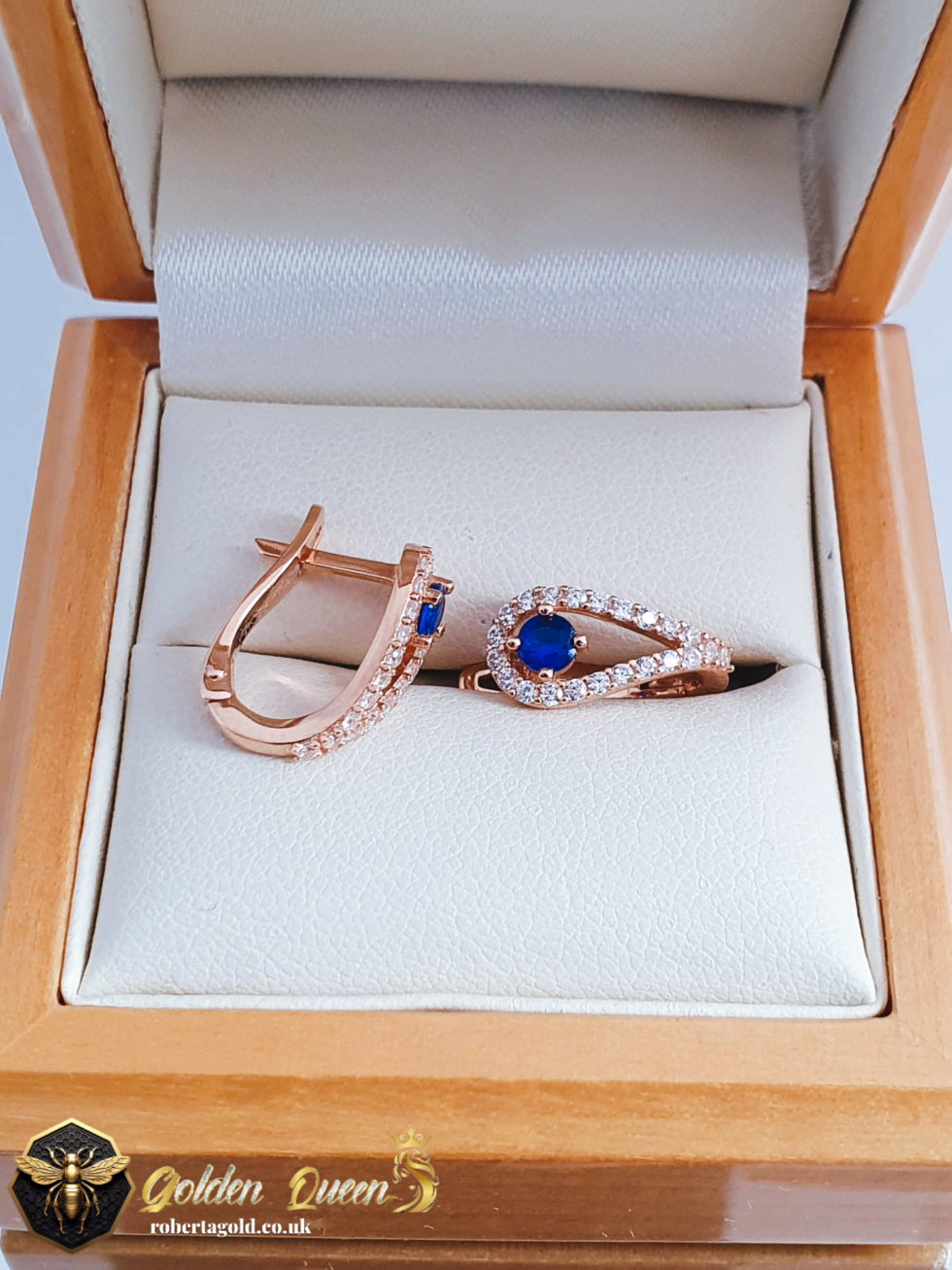 Earrings with white zirconia and dark blue topaz stone