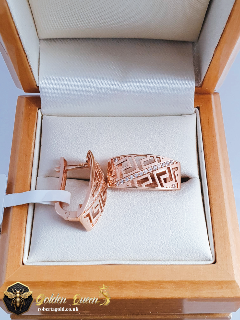 Golden earrings with white zirconia